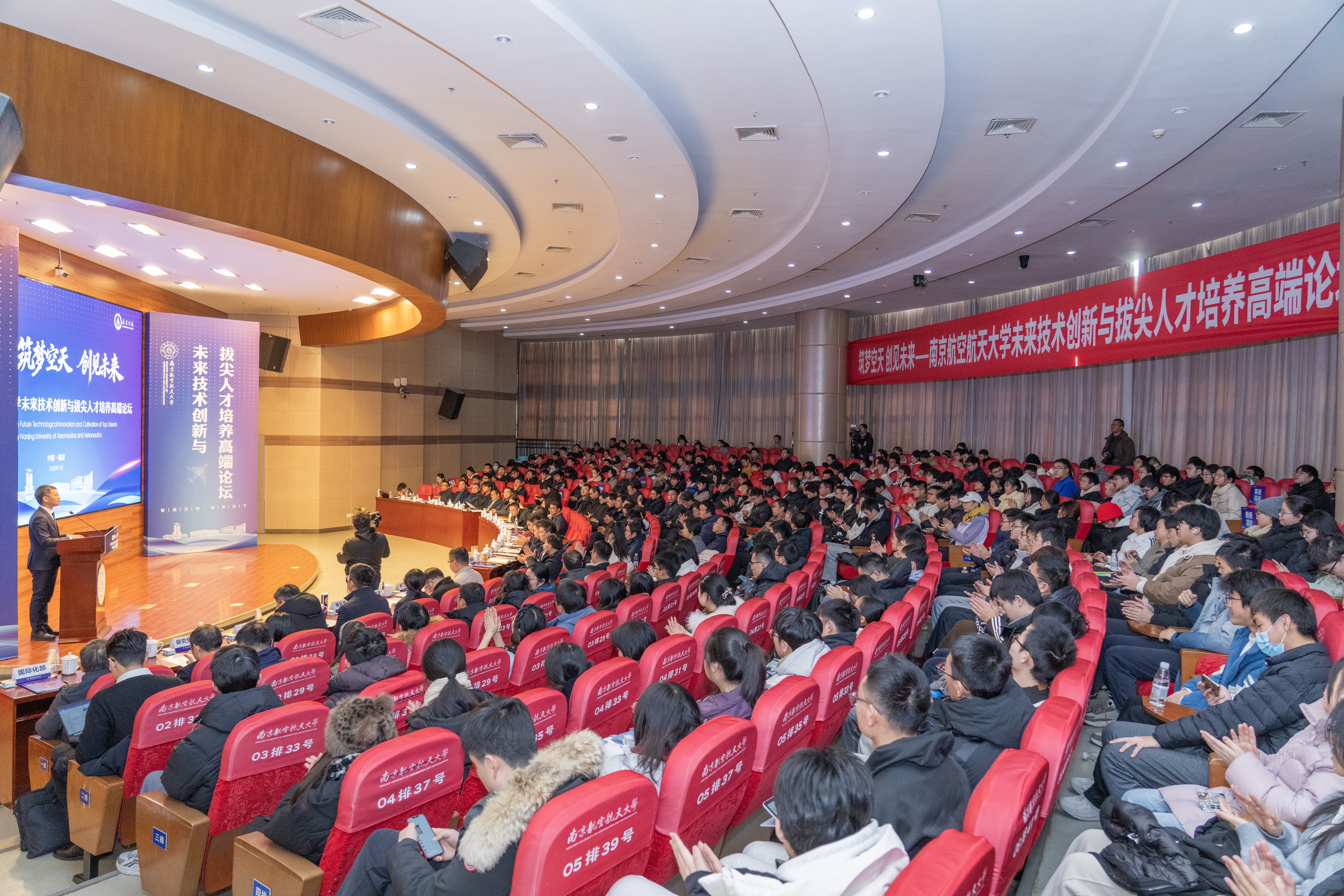 在国家深入实施科教兴国、人才强国战略的背景下,为积极响应教育部关于建设未来技术学院的号召,前瞻布局未来革命性、颠覆性技术人才培养,1月22日下午,长空学院举行“未来技术创新与拔尖人才培养高端论坛”暨未来技术学院揭牌仪式。中国科学院院士郭万林、郑海荣,校长姜斌、校长助理潘时龙,以及来自中国航天科技集团、中国航天科工集团、中国航空工业集团、中国电子科技集团、中国航发、中国商飞、国家高端航空装备技术创新中心有限公司等顶尖企业和东南大学兄弟高校的代表共聚一堂,共商未来技术发展大计,共绘拔尖创新人才培养蓝图。