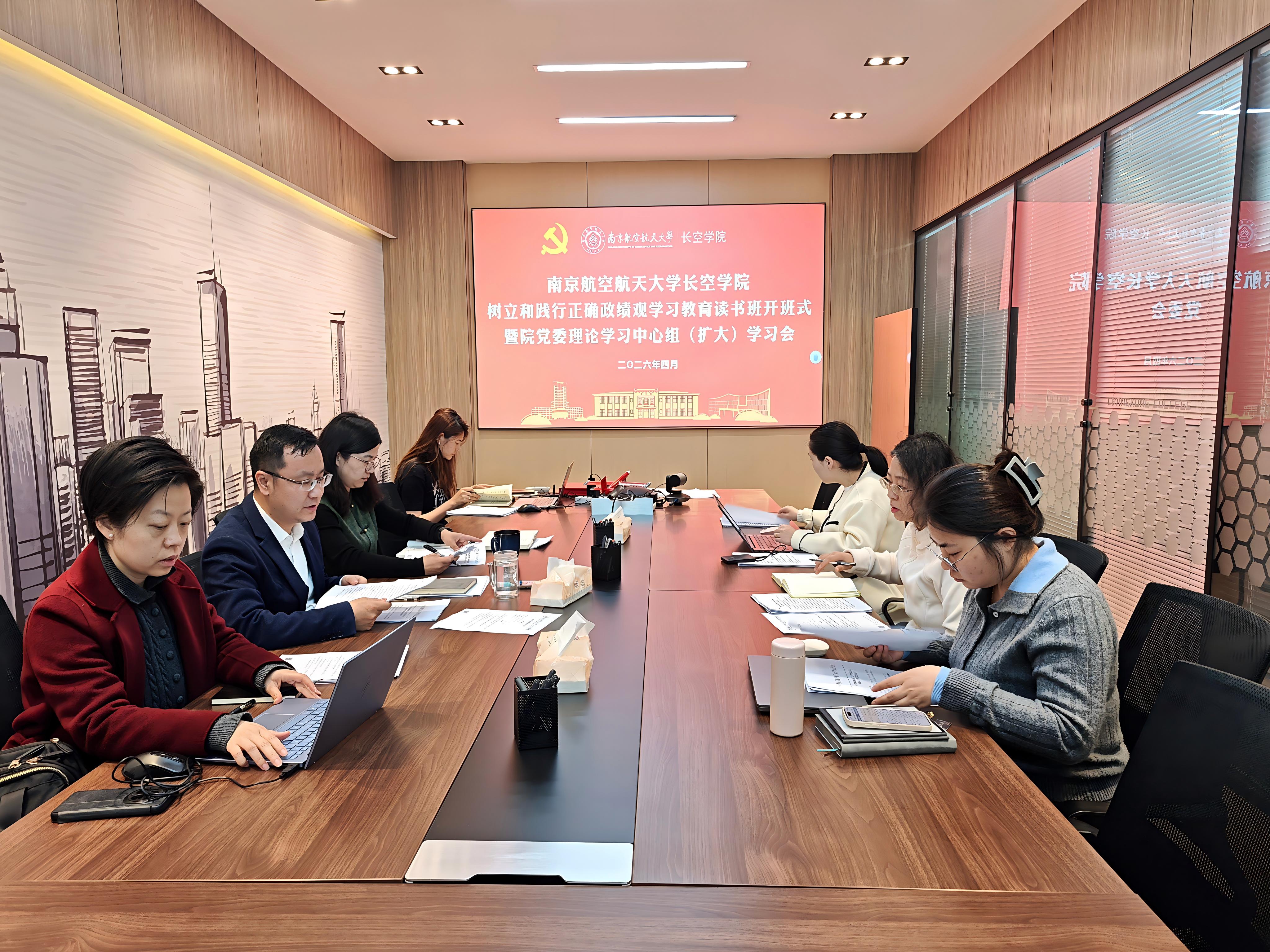 4月3日,长空学院举行树立和践行正确政绩观学习教育读书班开班式暨院党委理论学习中心组(扩大)学习会。院党委理论学习中心组全体成员,各党支部书记,各科室负责人参会。学院党委书记、院长朱建军主持会议。